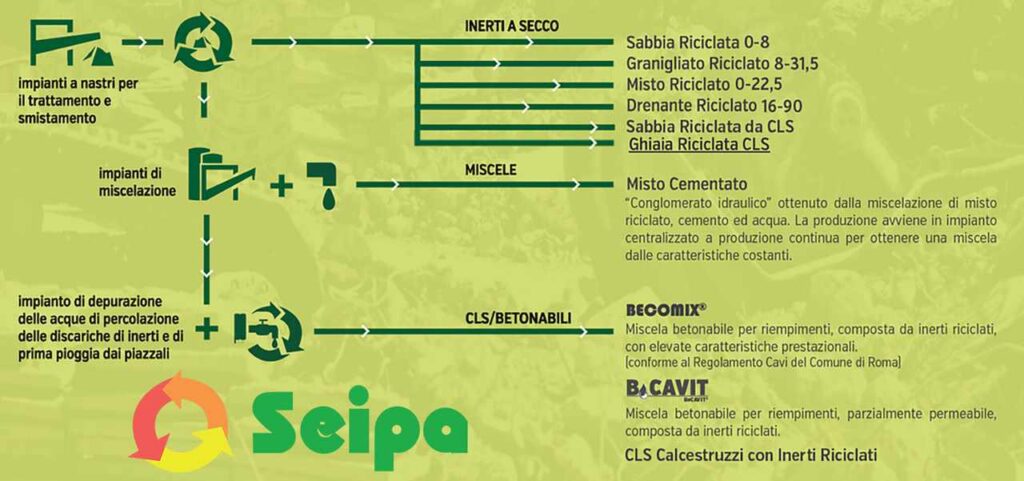 «Non vi sono più limiti tecnici od economici. Riciclare rifiuti inerti ed impiegare aggregati da inerti riciclati è economicamente conveniente sia nell’immediato che nel lungo termine, per gli ovvi benefici ambientali che tale pratica circolare produce» spiega Valter Ciaraffoni, Direttore Generale del Gruppo Seipa, impegnato dal 1968 nell’attività di fornitura di materiali e servizi nell’ambito delle costruzioni e demolizioni.